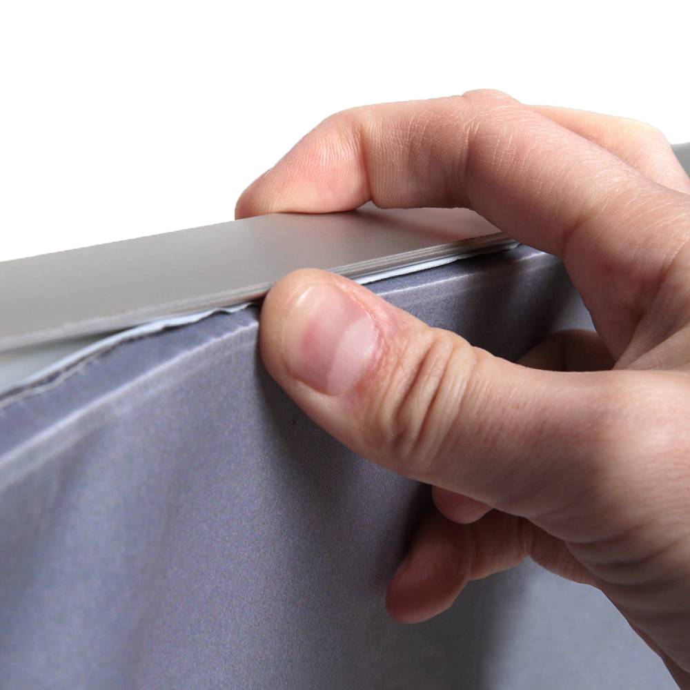The Reflexion backlit portable kiosk is made of an umbrella-type pop-up structure. It is then covered with a fabric inserted with silicone in a straight bar placed on the edges of the structure for a perfect finish. The structure unfolds in a few seconds, assembly and disassembly are within everyone’s reach.