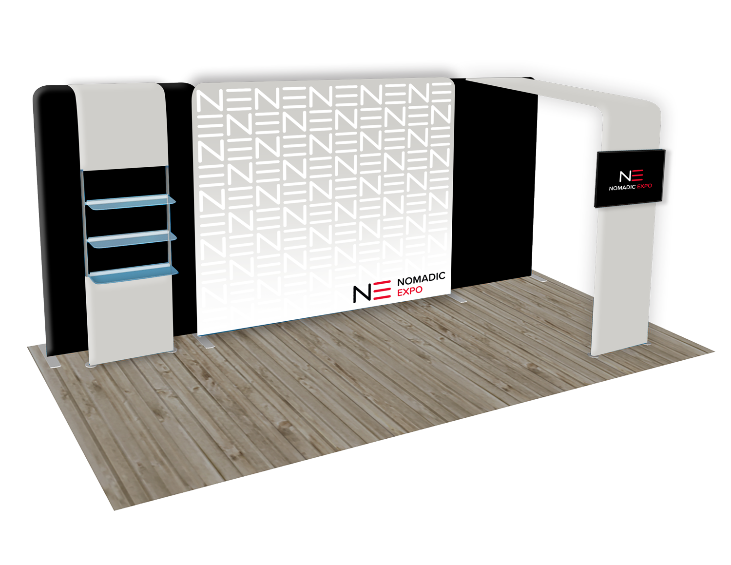 The Horizon Media portable kiosk with tubular structure allows you to create your own custom space. With a wide range of formats and assembly options, its structure made of 1.25" lightweight aluminum tubes covered with a zippered stretch fabric is available in straight and curved modules. This stand solution offers sublimation printing on one or two sides. You can create your own configuration or choose from our range of predefined configurations. Many accessories are at your disposal.