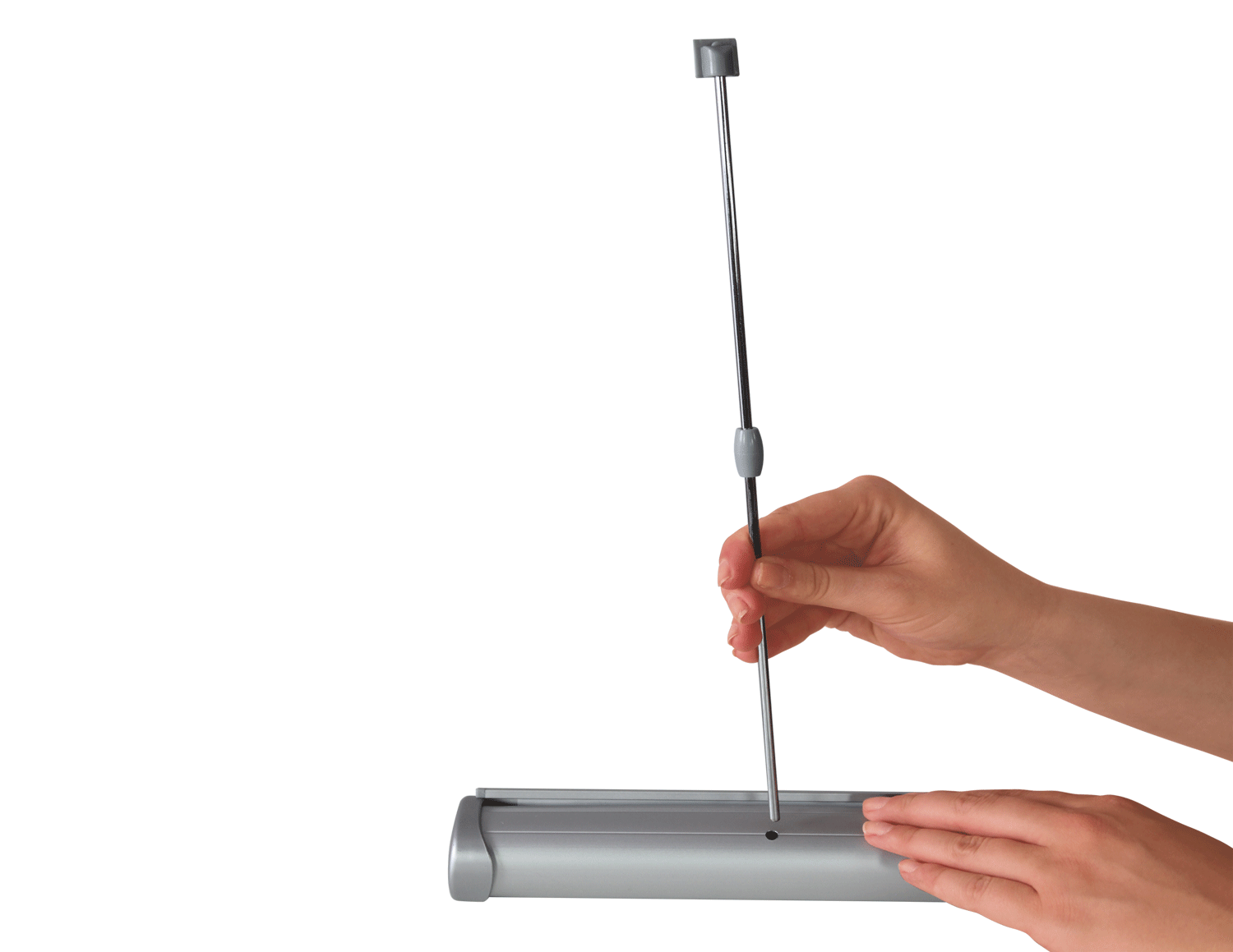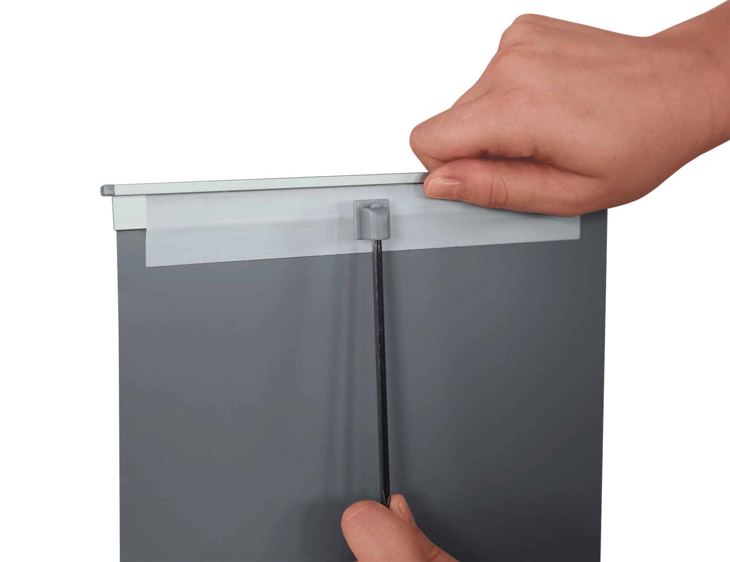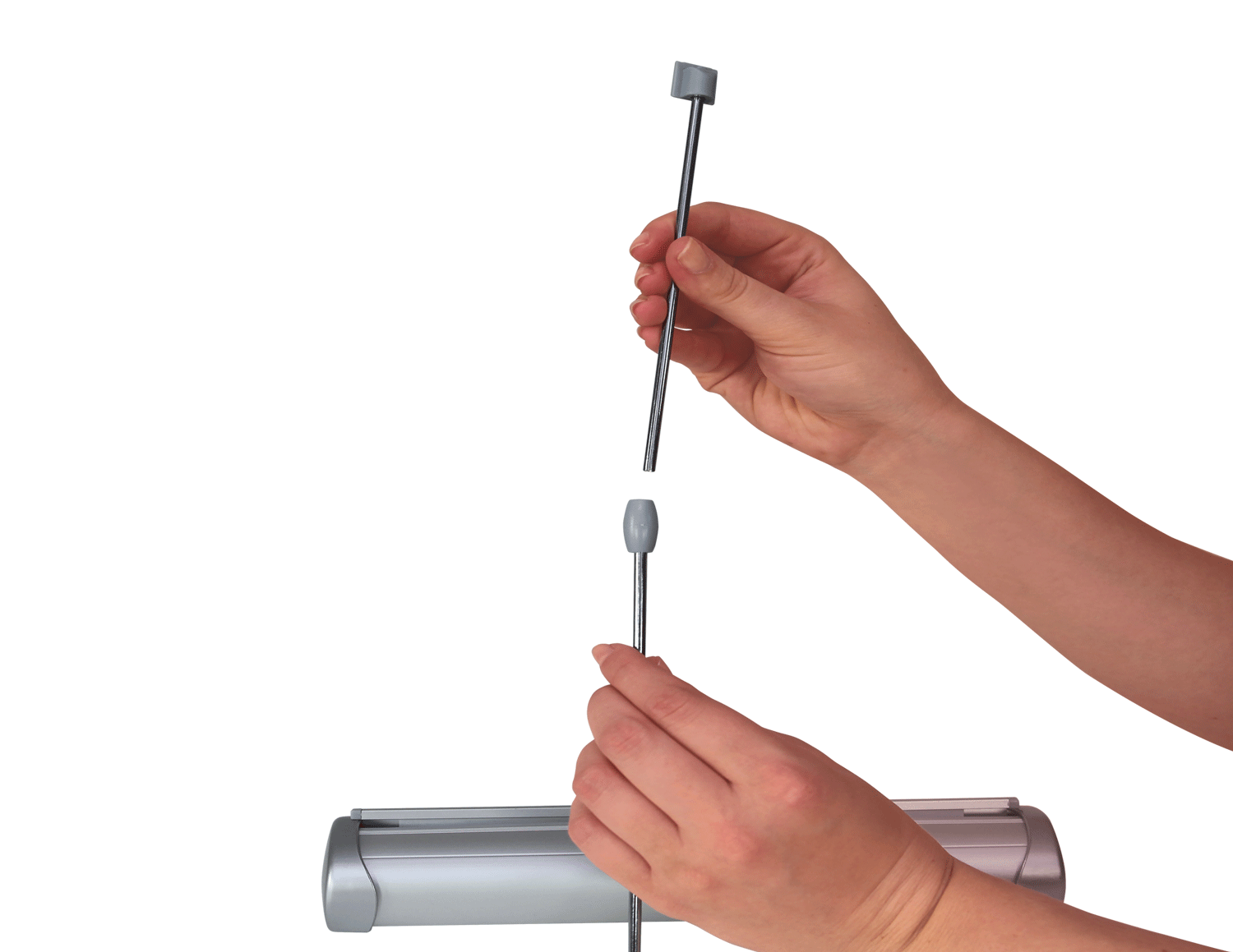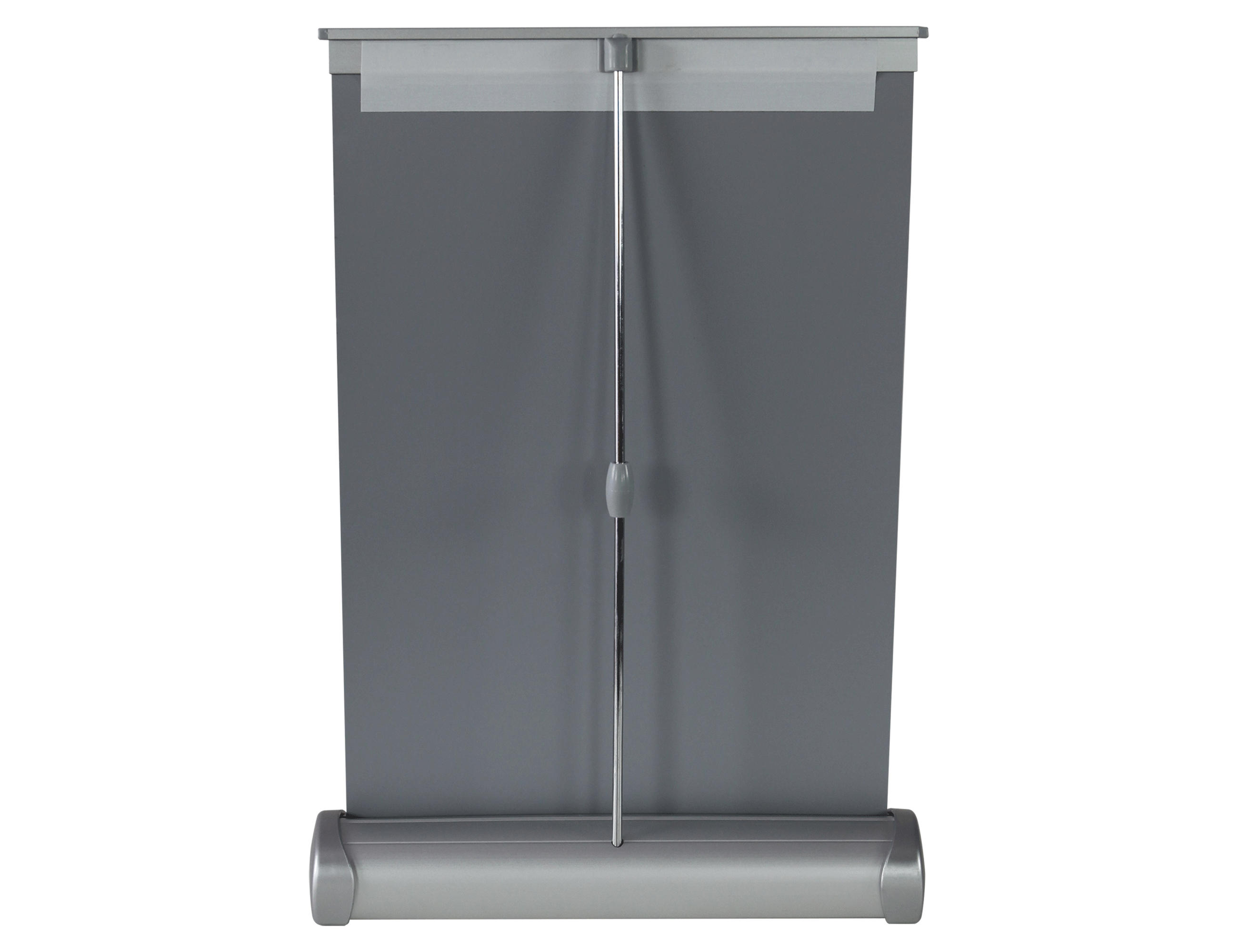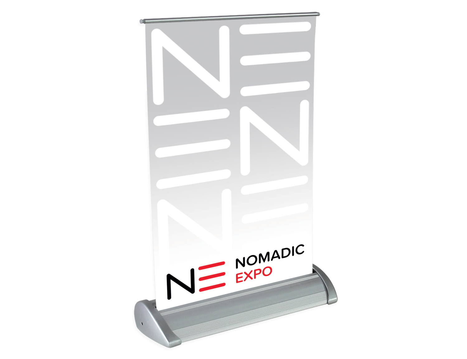 The Jules is a small table retractable banner holder roll-up. Its small format is ideal for limited space or for additional table display.