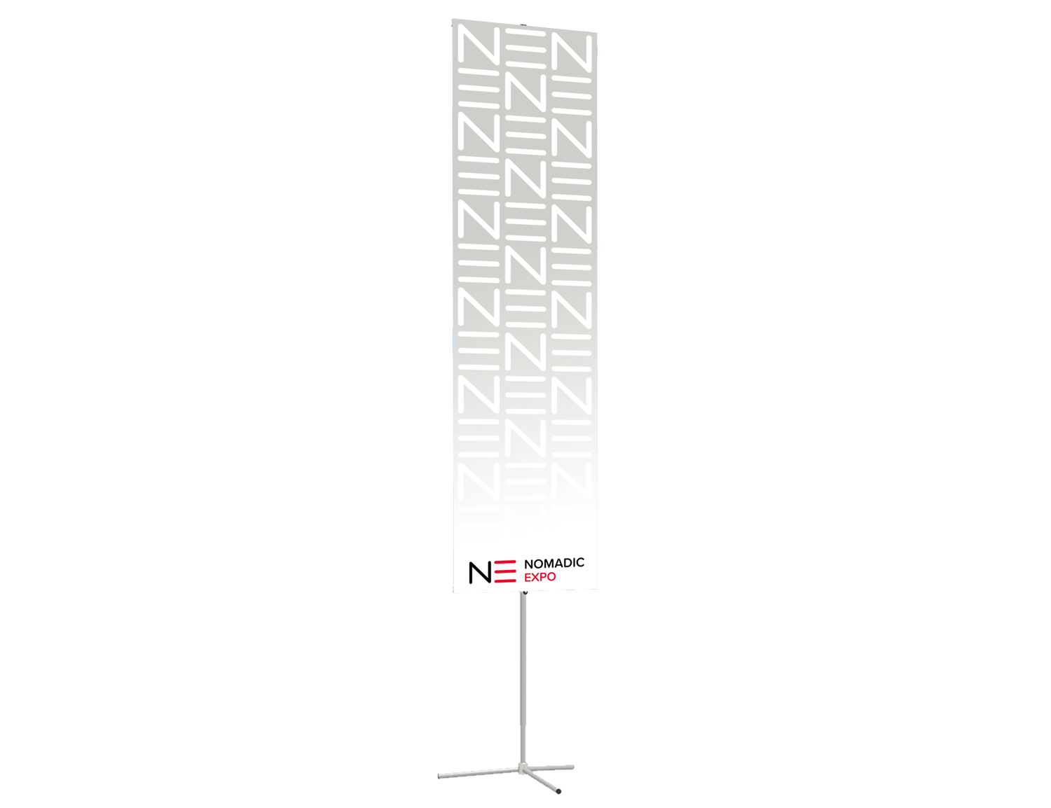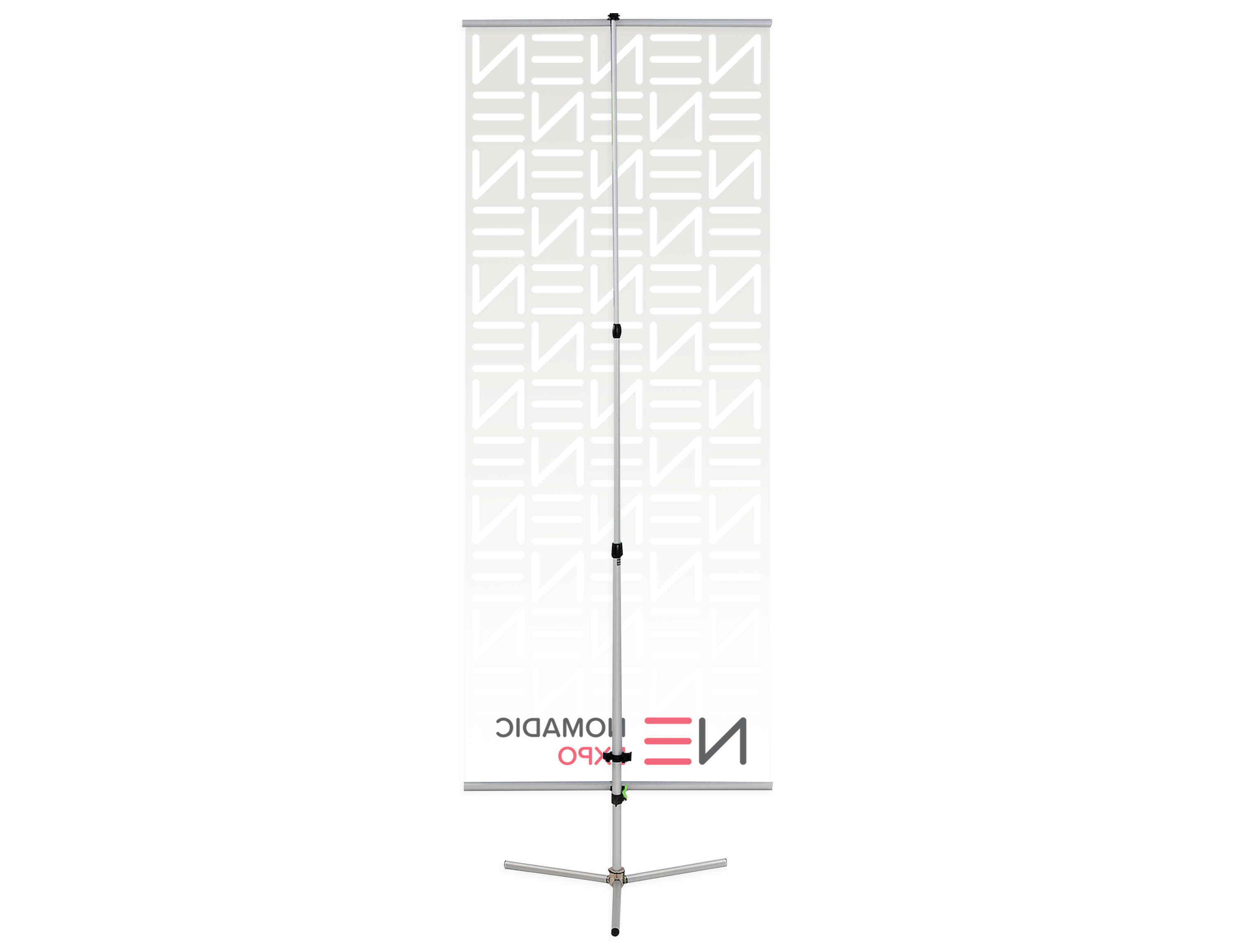 The Omega banner stand holder roll-up can be used as a single or double sided banner display. This banner holder is offered in 4 widths and is adjustable in height, thanks to its telescopic pole. Suitable for all types of market and ideal to stand out.