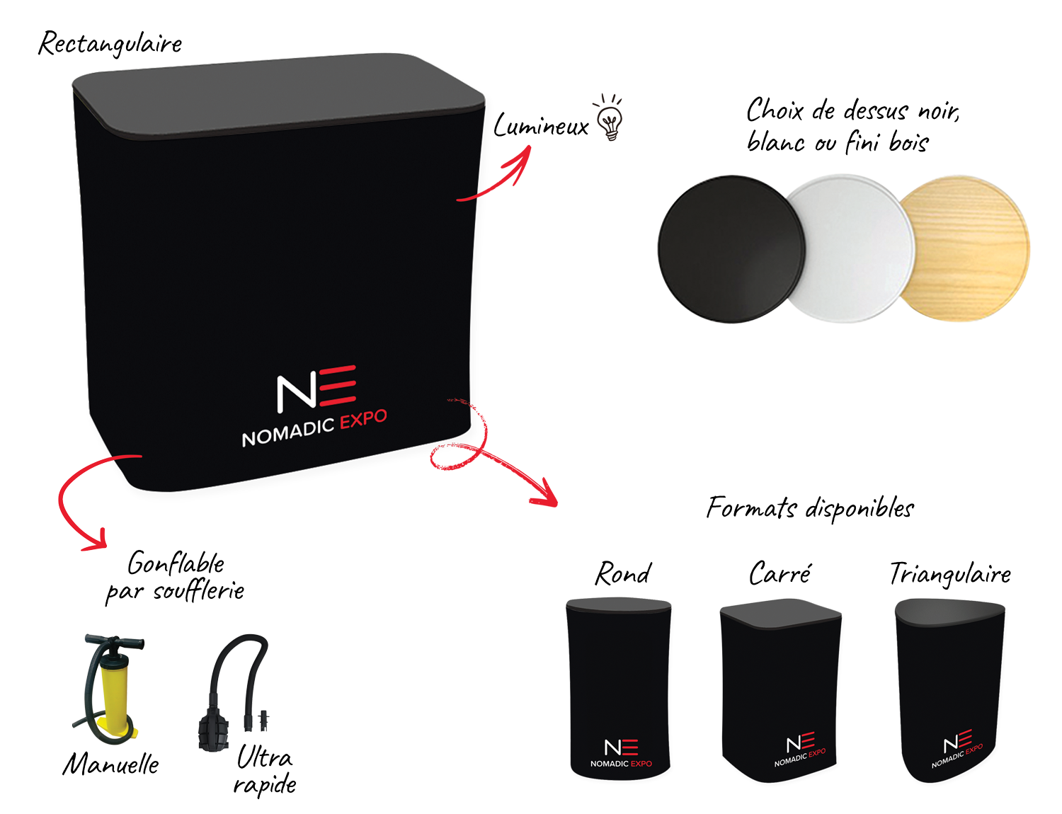 Le comptoir Aura gonflable lumineux est un comptoir transportable alliant rapidité de montage et une solidité suffisamment rigide pour s’asseoir dessus ! L’impression par sublimation est faite sur un tissu de qualité qui diffuse à la perfection la lumière, ce qui vous offre une surface marketing lumineuse pour un effet remarquable. Disponible en 4 versions.