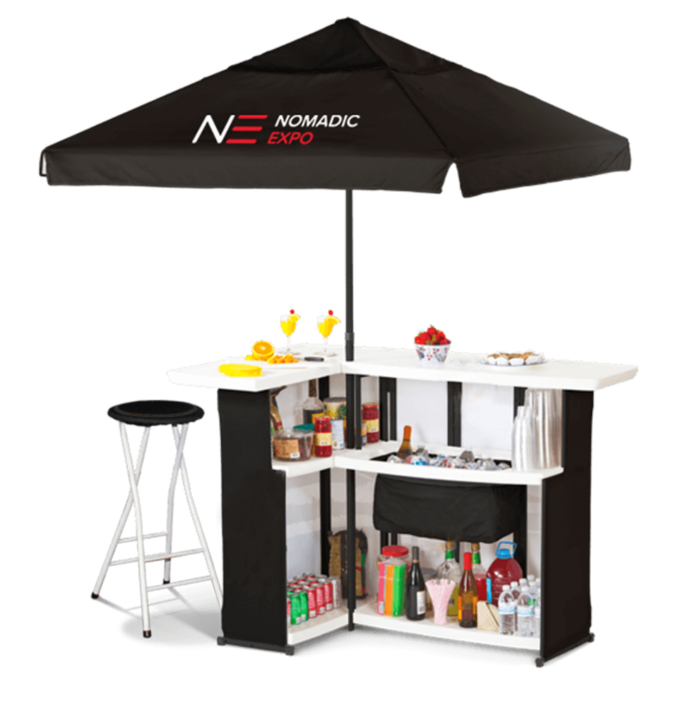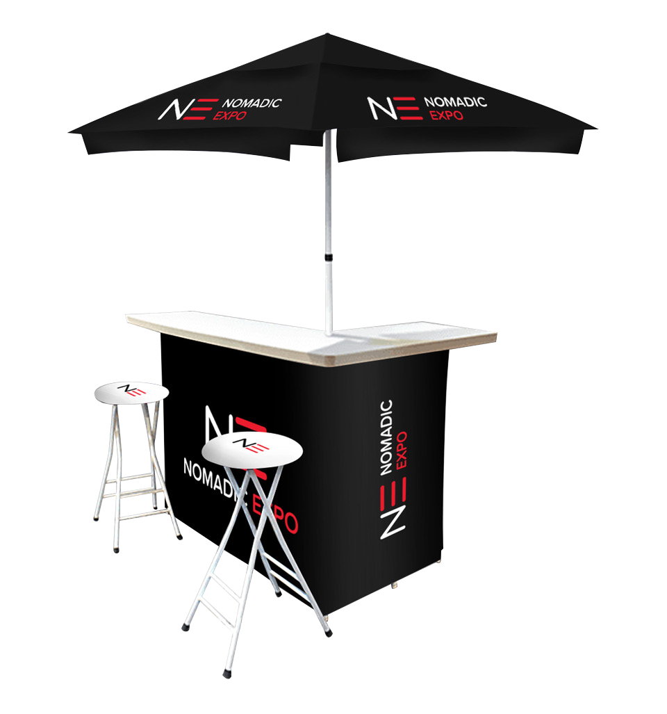 Notre ensemble bar promotionnel extérieur est idéal pour mettre en valeur votre marque tout en servant des rafraîchissements avec style. Avec sa facade imprimée, ses trois niveaux d'étagères et son espace pour produits réfrigérés, vous avez tout pour bien servir vos convives. L'ensemble comprend également un parasol imprimé et 4 tabourets avec dessus imprimé. Portable et polyvalent, c’est votre solution incontournable pour les promotions extérieures, les festivals et les rassemblements. Rehaussez votre expérience d’événement avec notre bar promotionnel extérieur dès aujourd’hui. Cadre en acier robuste pour une utilisation durable.