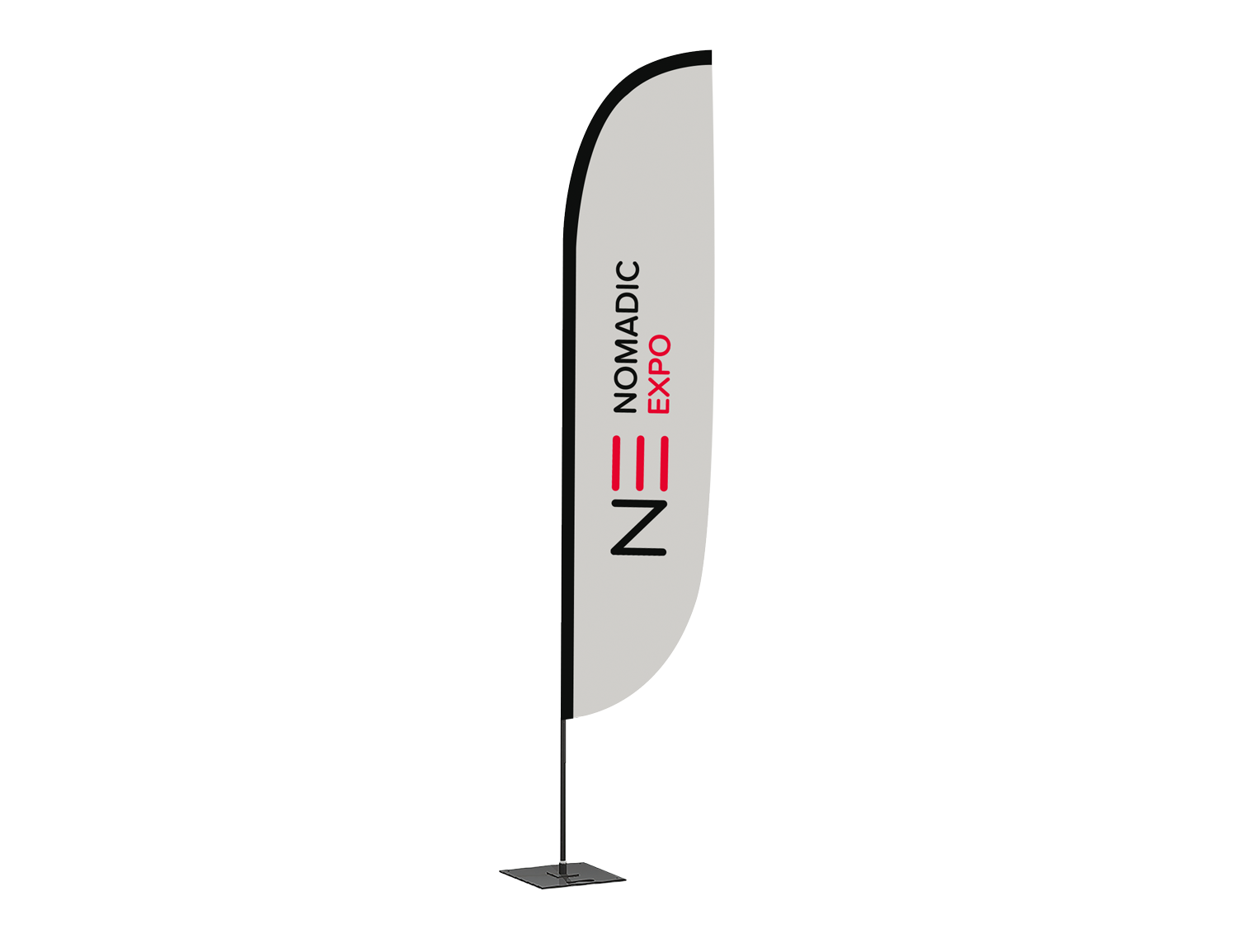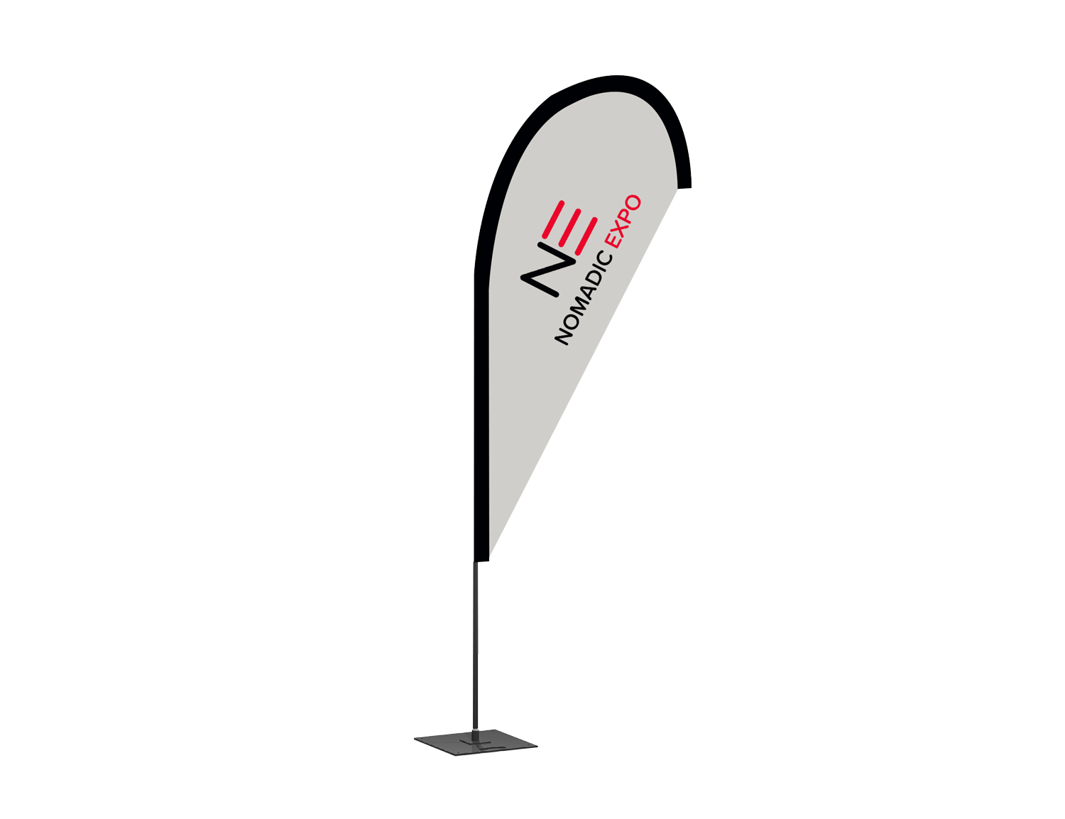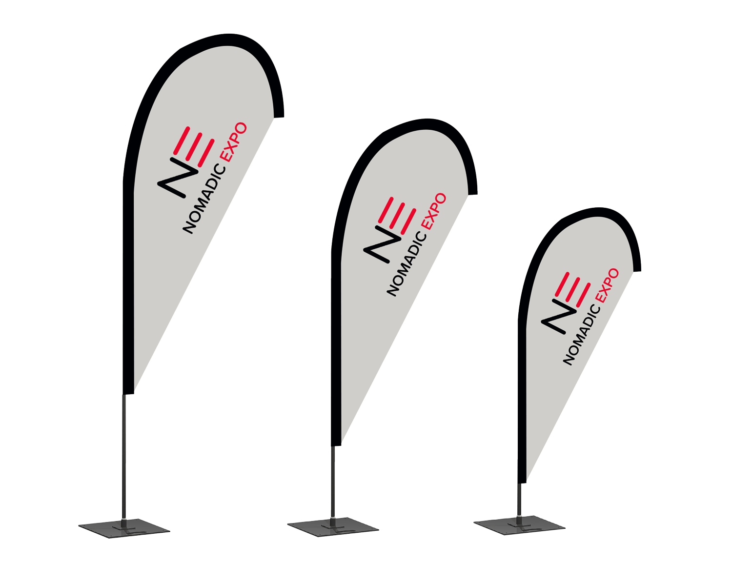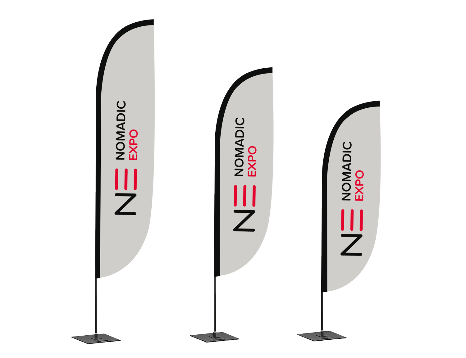 Nos oriflammes, aussi appelés Beach Flags, sont fixés à un poteau de support flexible, et le tissu imprimé par sublimation est disponible en trois formes et hauteurs possibles. Distinguez-vous de vos compétiteurs en affichant vos couleurs haut et fort avec nos oriflammes qui ne manqueront pas d'attirer l'attention avec leurs mouvements.