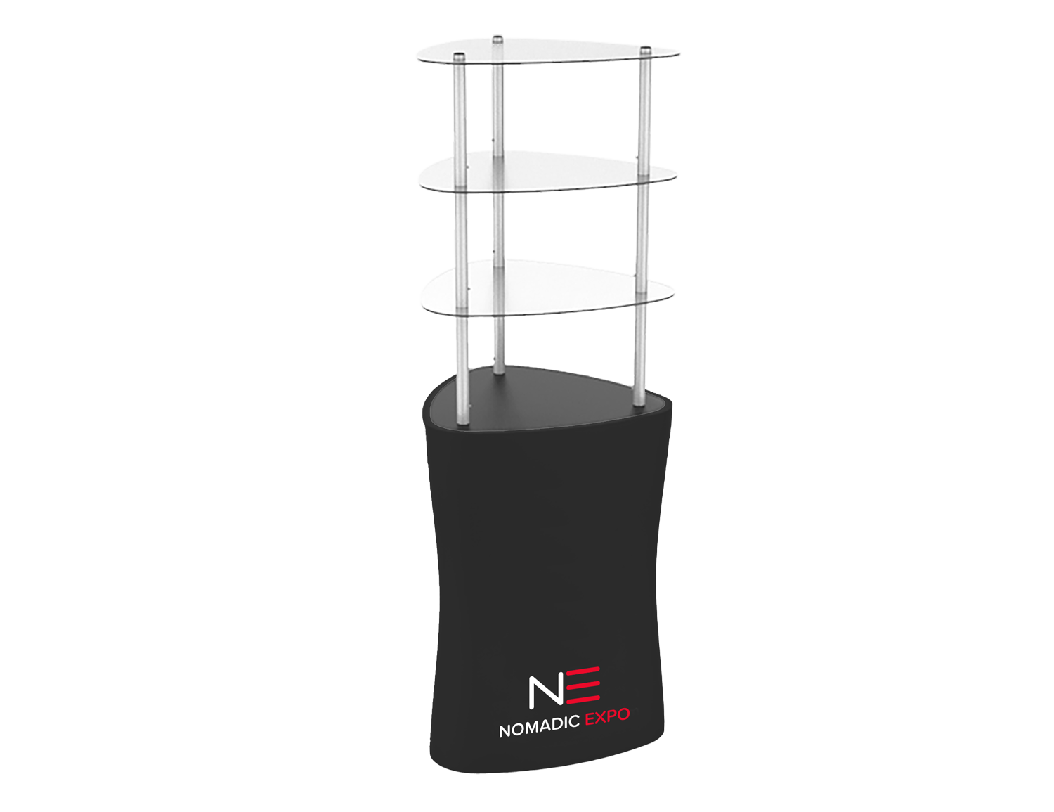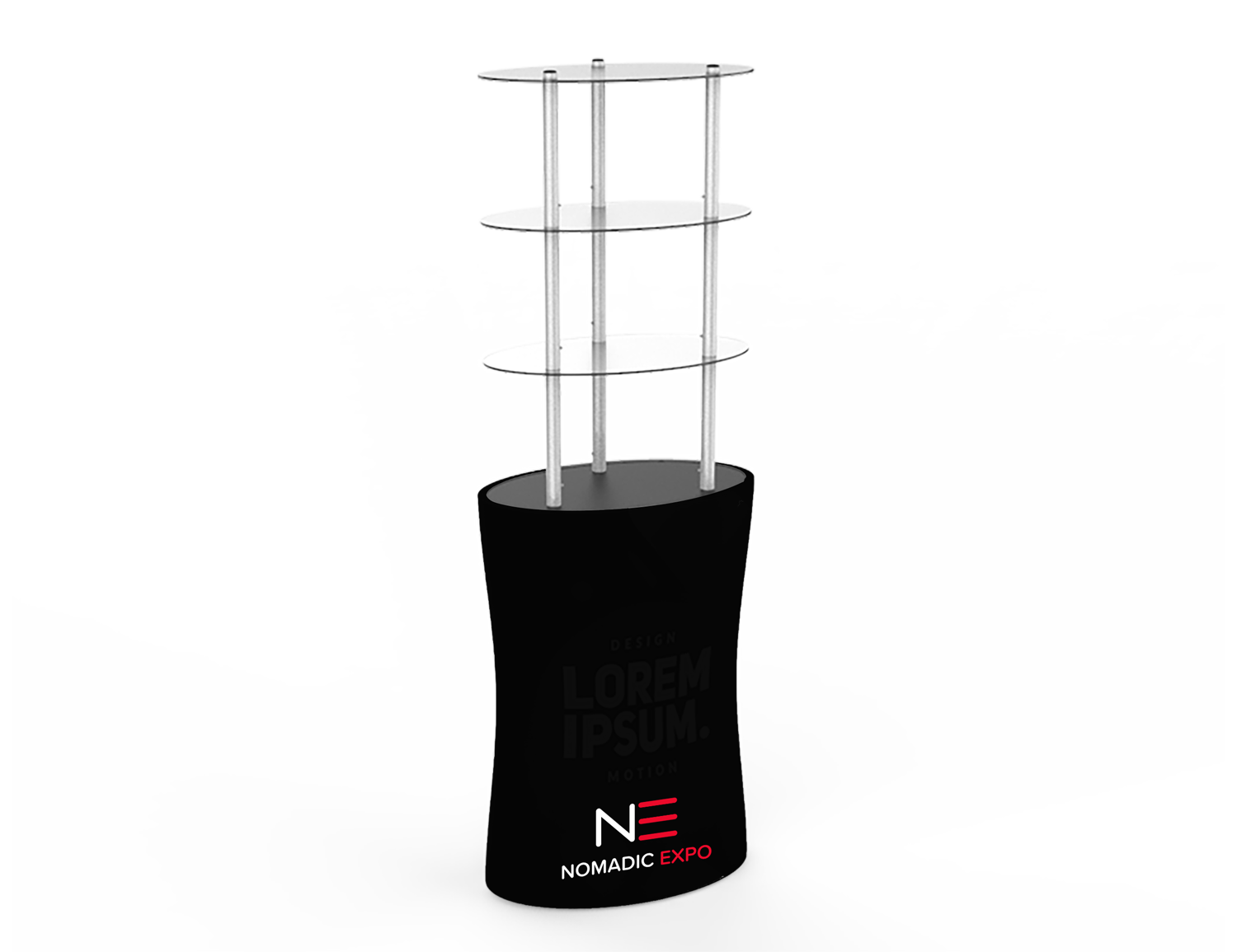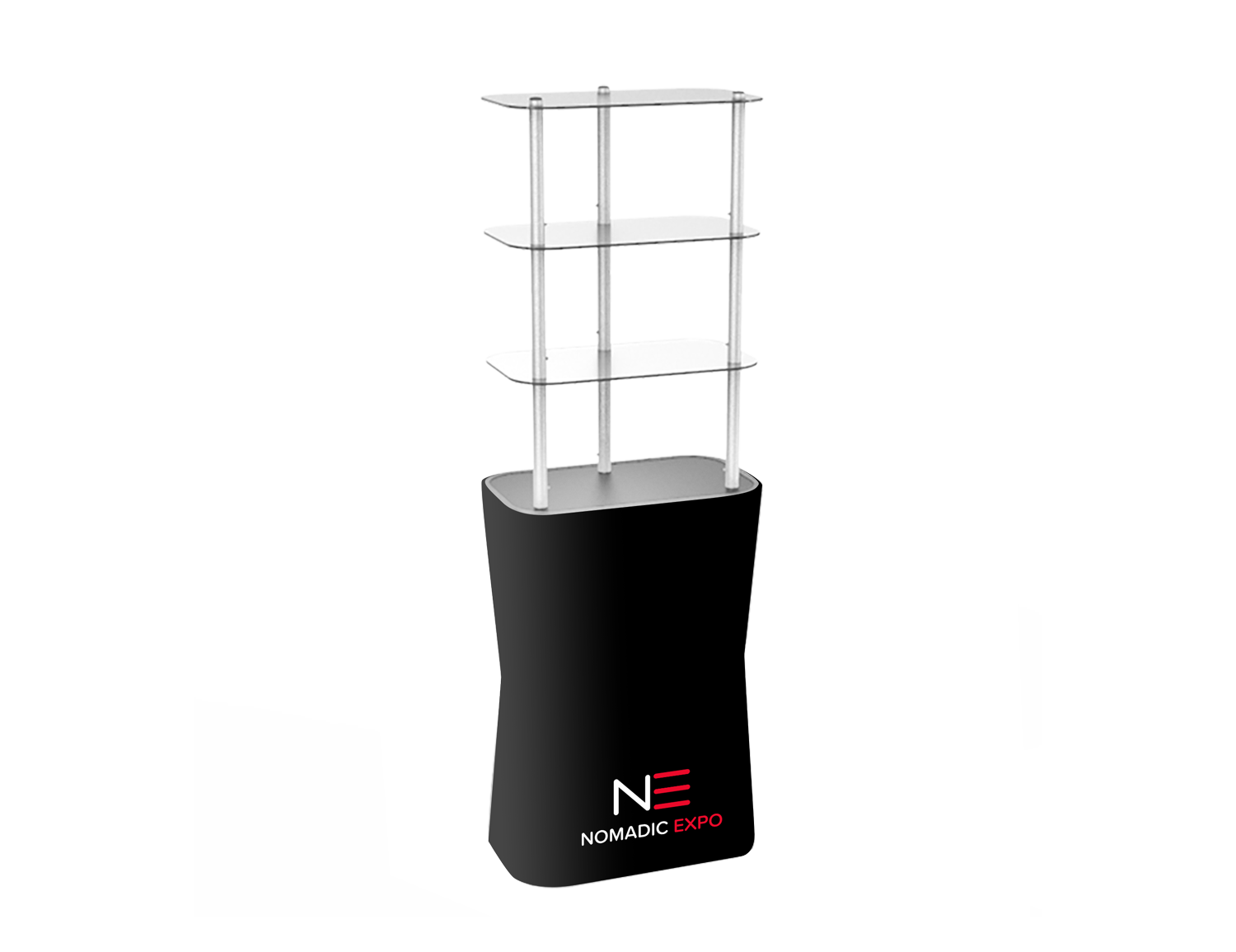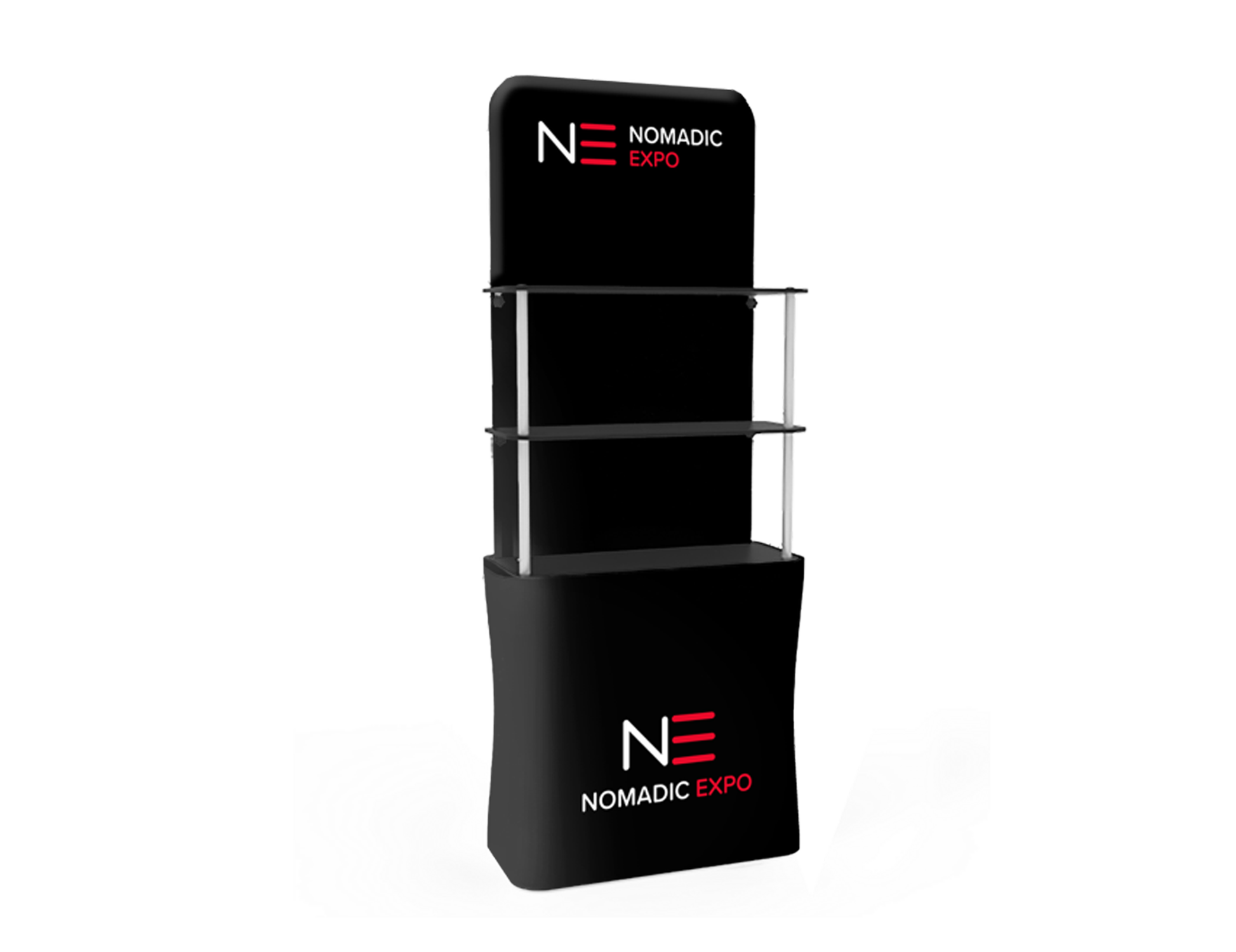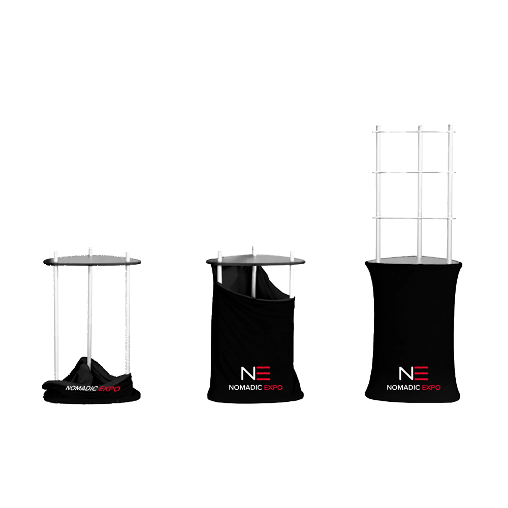 Ces tours podiums à tablettes portatives Xfab sont fabriquées de tubes d’aluminium recouverte d’un tissu imprimé par sublimation. Qu’elles servent de comptoir à tablette, de présentoir, d'étalage ou de rangement, c’est la solution idéale pour mettre de l’avant produits, brochures et déco.